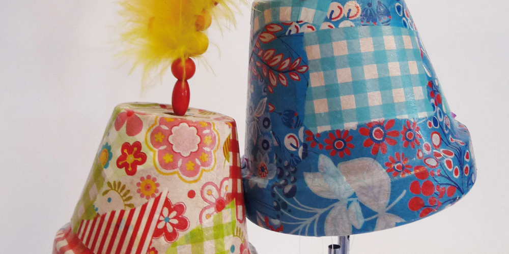 Mit Mosaik verzierte Blumentöpfe, originelle Dekorationen in Regenbogenfarben für den Garten oder den Balkon, die unterschiedlichsten Tiere und Figuren können in der Sommerwerkstatt aus einfachen Tontöpfen in den unterschiedlichsten Größen entstehen.