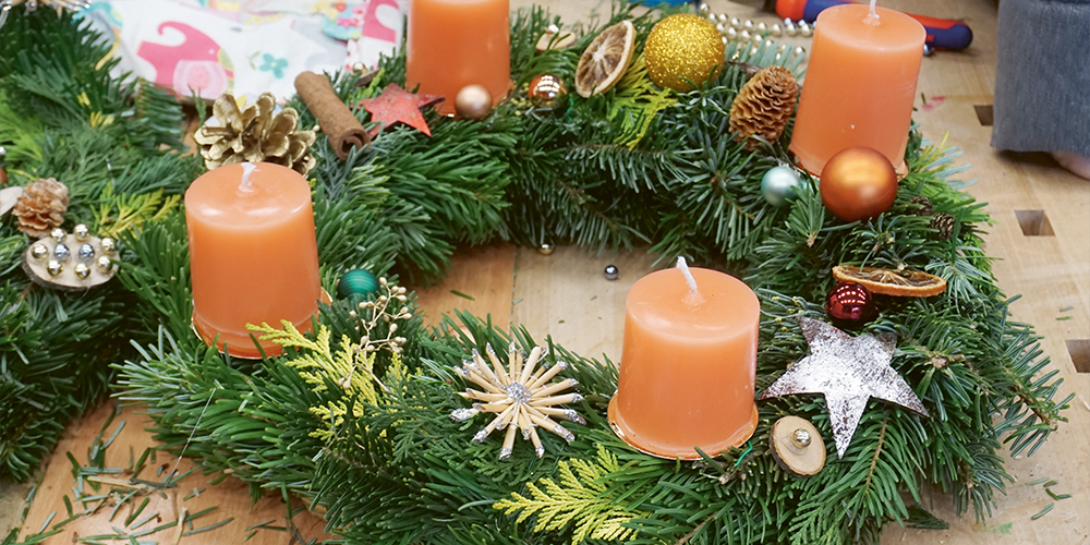 In diesem Workshop kannst du bei weihnachtlicher Stimmung deinen eigenen Adventskranz binden und dekorieren.