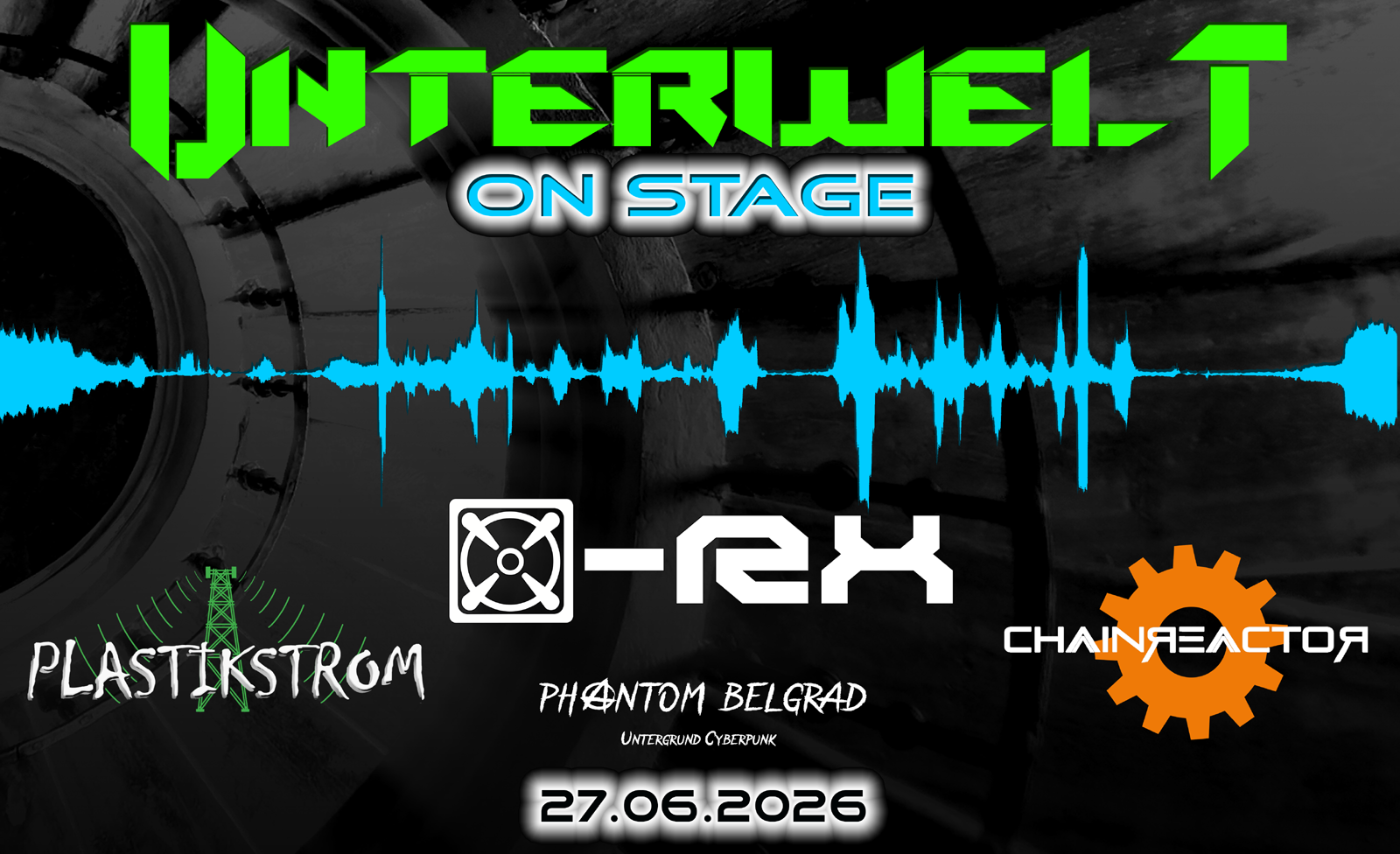 Zur Jahresfeier der UNTERWELT Partys und zur Premiere des UNTERWELT live on stage Festivals präsentieren wir Euch mit [x]-Rx, Chainreactor, Plastikstrom und Phantom Belgrad vier erstklassige Acts aus der Dark Electro/Industrial/Techno Szene. Wer diese Acts bereits live auf der Bühne erleben durfte, weiß, dass ihre Auftritte pure Eskalation bedeuten und sie die Hansa 39 kompromisslos zum Beben bringen werden.